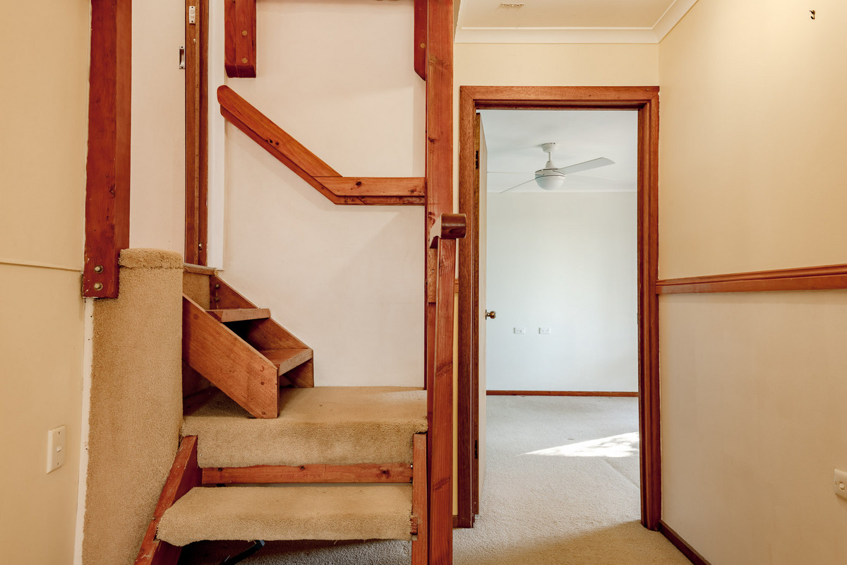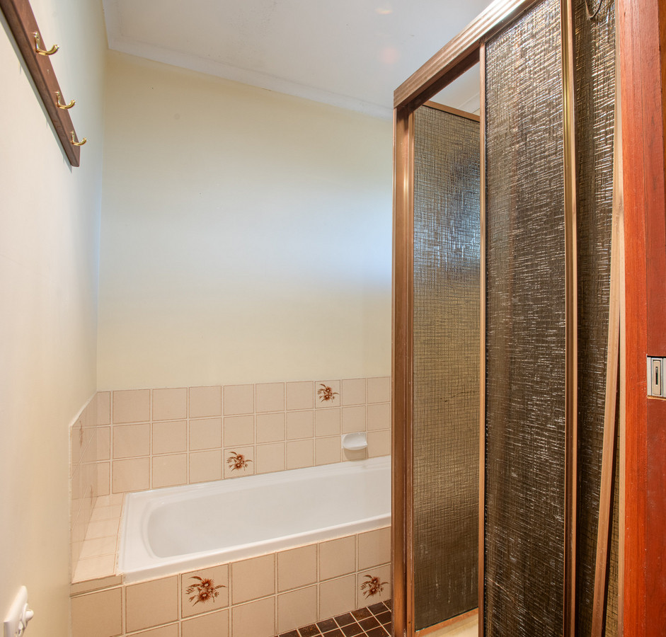 The main bedroom has a small walk-in wardrobe as well as an ensuite with separate toilet. There are numerous options for reconfiguring the current layout to make the most of this space. Bedrooms two and three are located on the home’s lower level. Both have built-in wardrobes and open out onto a generous covered lower-level entertaining deck – or the perfect kid’s play area – which then leads down to the backyard. Also on the lower level is the home’s main bathroom – with its family-friendly, three-way layout – as well as the laundry which has separate external access to the backyard.