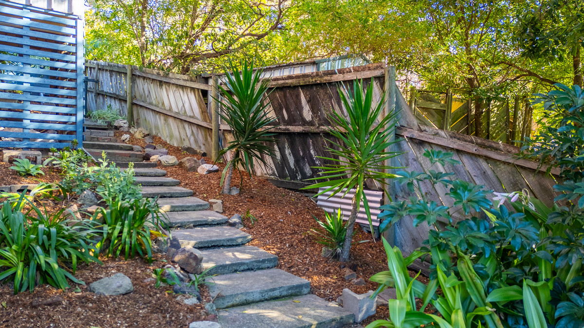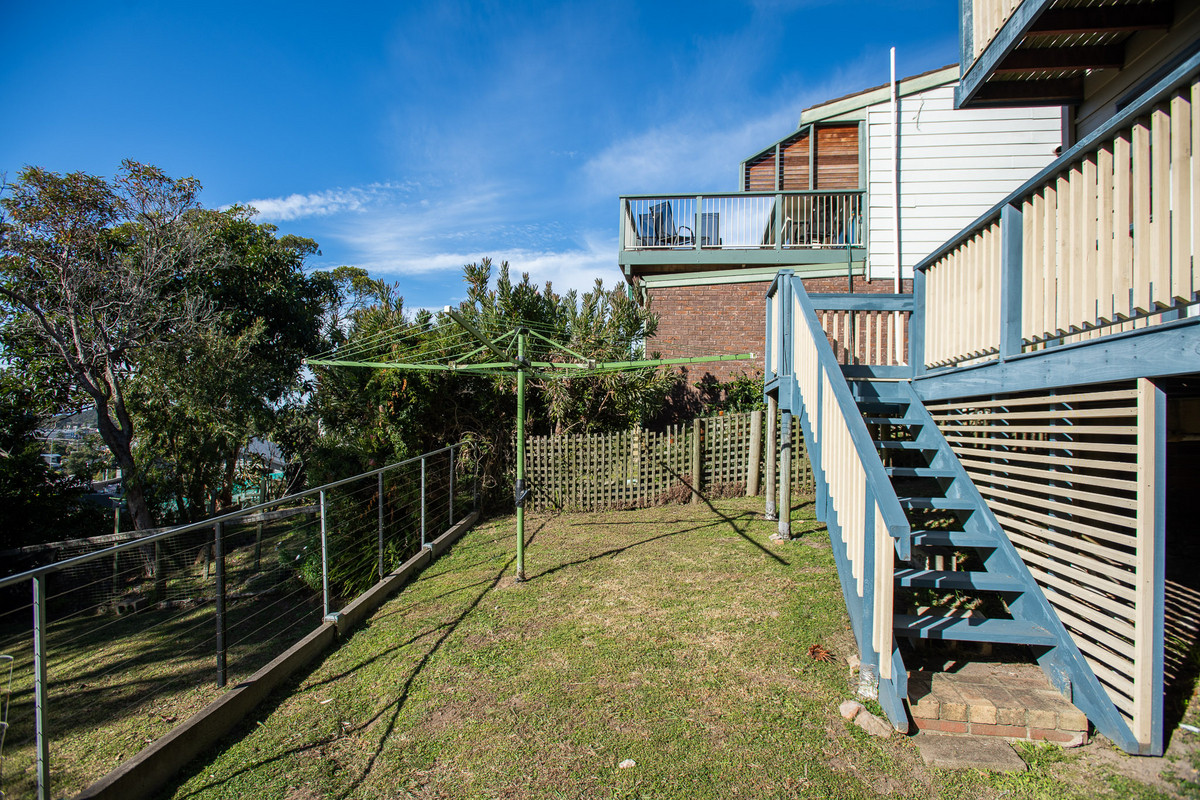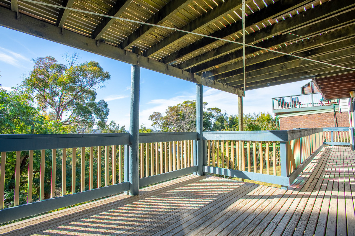 The home is surrounded by very neat and tidy, low maintenance gardens and the retained, two-tier backyard makes the most of the sloping block. This property also adjoins a Crown Land reserve at the rear so there’s no neighbours over the back fence. There’s a single lock-up garage with internal access, and extra storage space, as well as additional parking spaces in the front yard, and a convenient unsealed under-house storage space for bikes, fishing gear and the like.