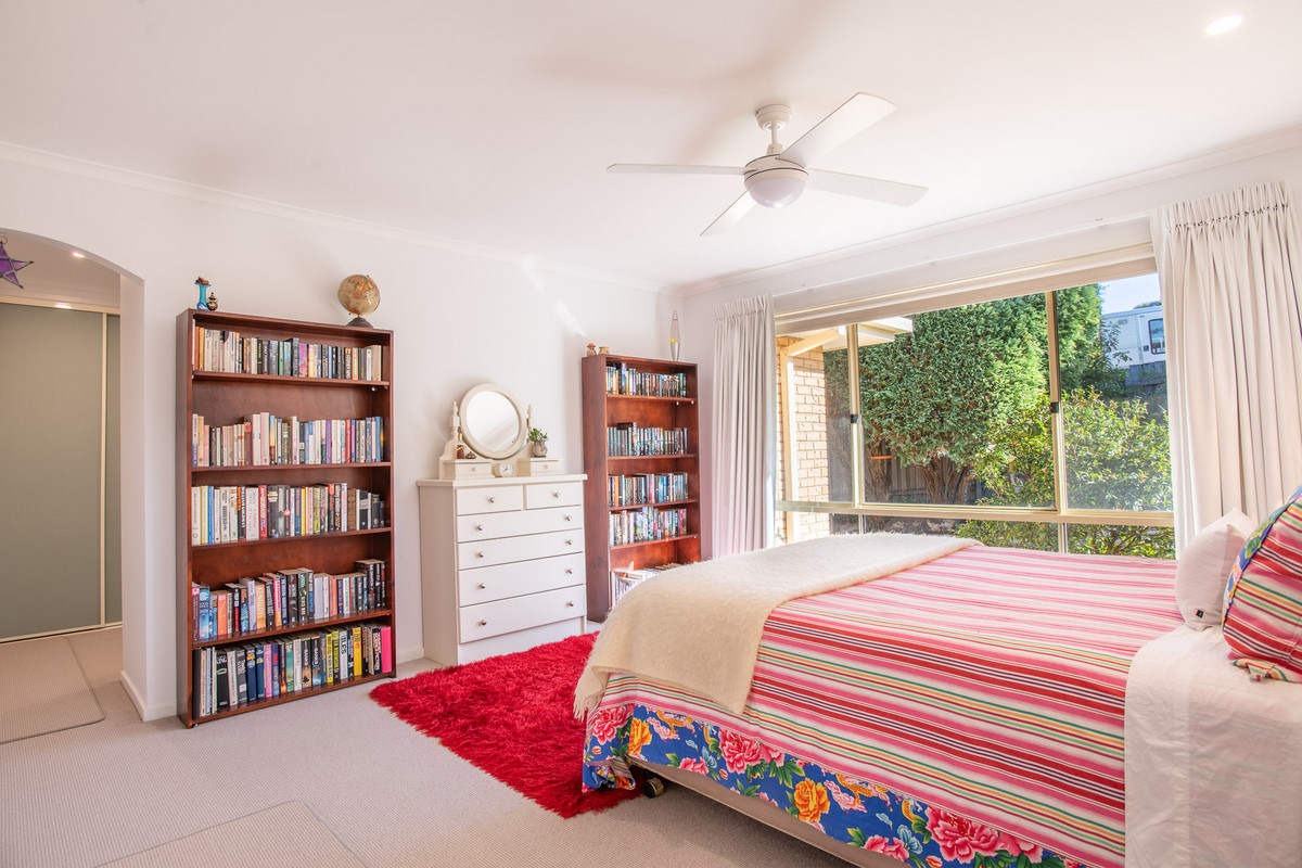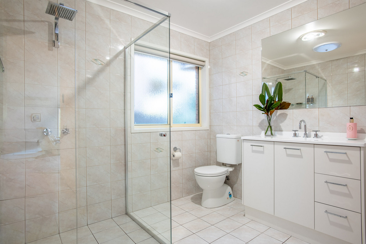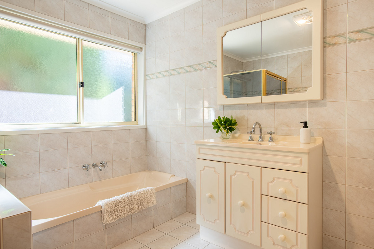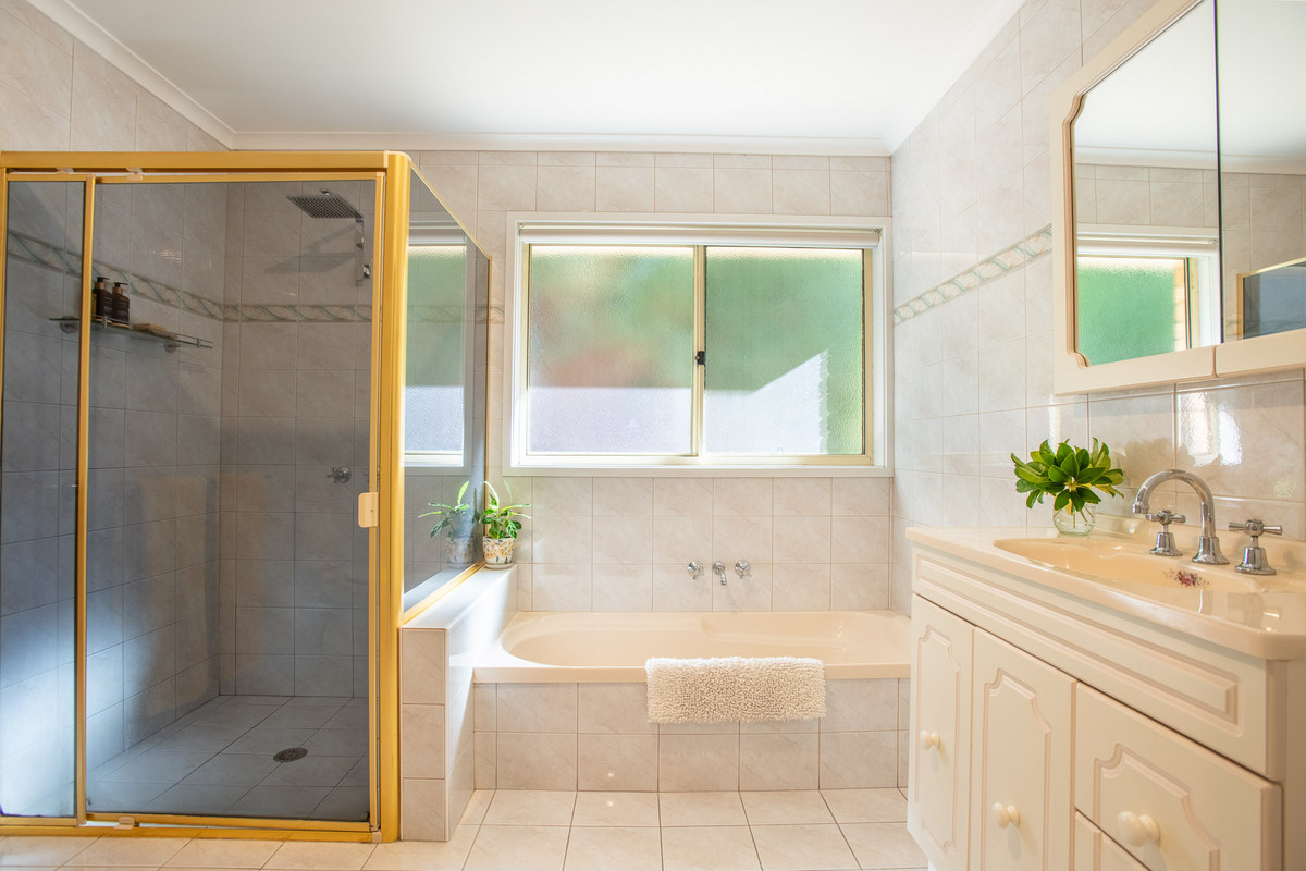 The home’s serene and spacious main bedroom suite has pleasant views of the backyard, a huge walk-through wardrobe with abundant hanging and storage space, and a large ensuite bathroom with separate bath and shower.