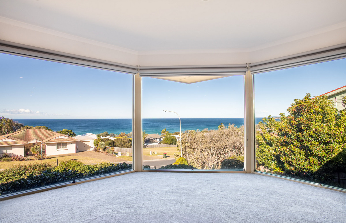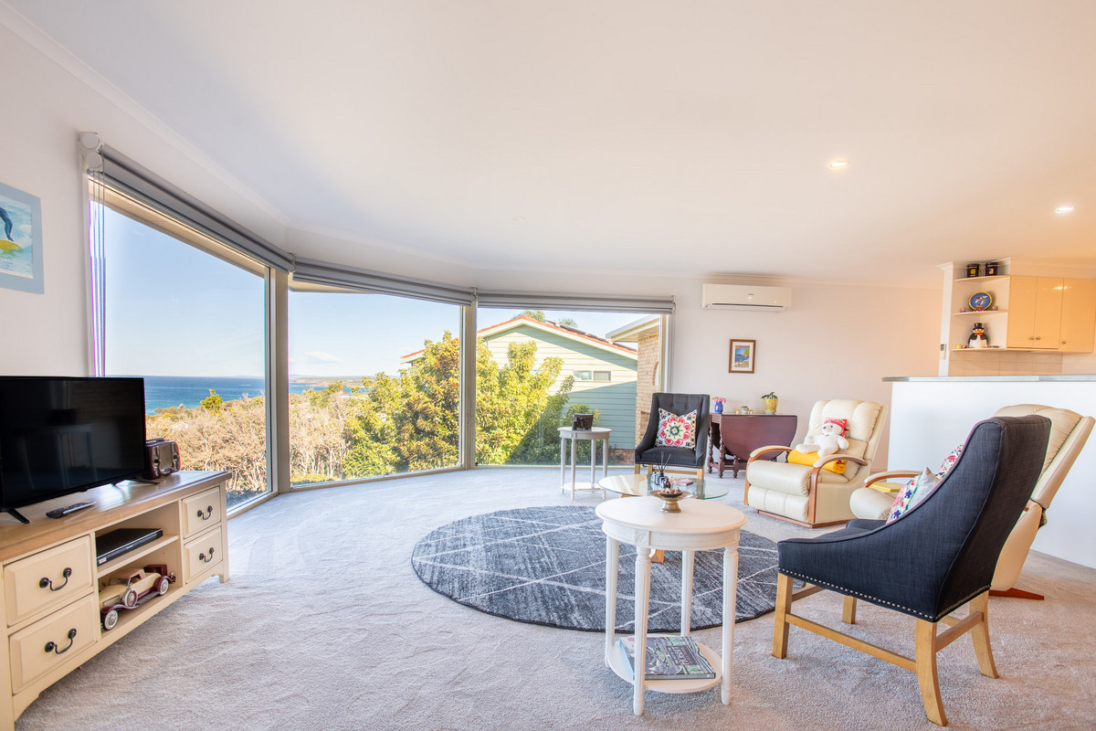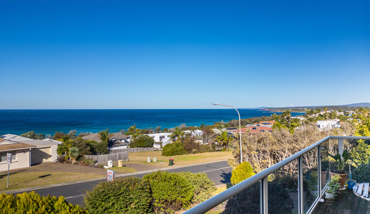 Located in the friendly community of Tura Beach, a quiet neighbourhood with a strong sense of community from the combination of families and retirees in owner-occupied homes. This solid brick, easy-care home is located less than five minutes’ drive to the Tura Beach Shopping Centre, Country Club, medical centre and public library, and a short stroll away from a children’s park and a beach access track. The seaside resort town of Merimbula with its speciality shops and thriving cafes, bars and restaurants is less than 10 minutes’ drive away, and the regional centre of Bega is 25 minutes’ drive to the north. With lots of space for the whole family, and perfectly positioned to enjoy the very best the Sapphire Coast has to offer, enjoy the spectacular, sought-after ocean views from 139 Pacific Way.