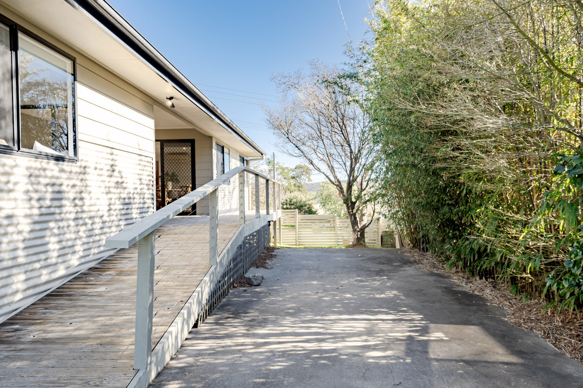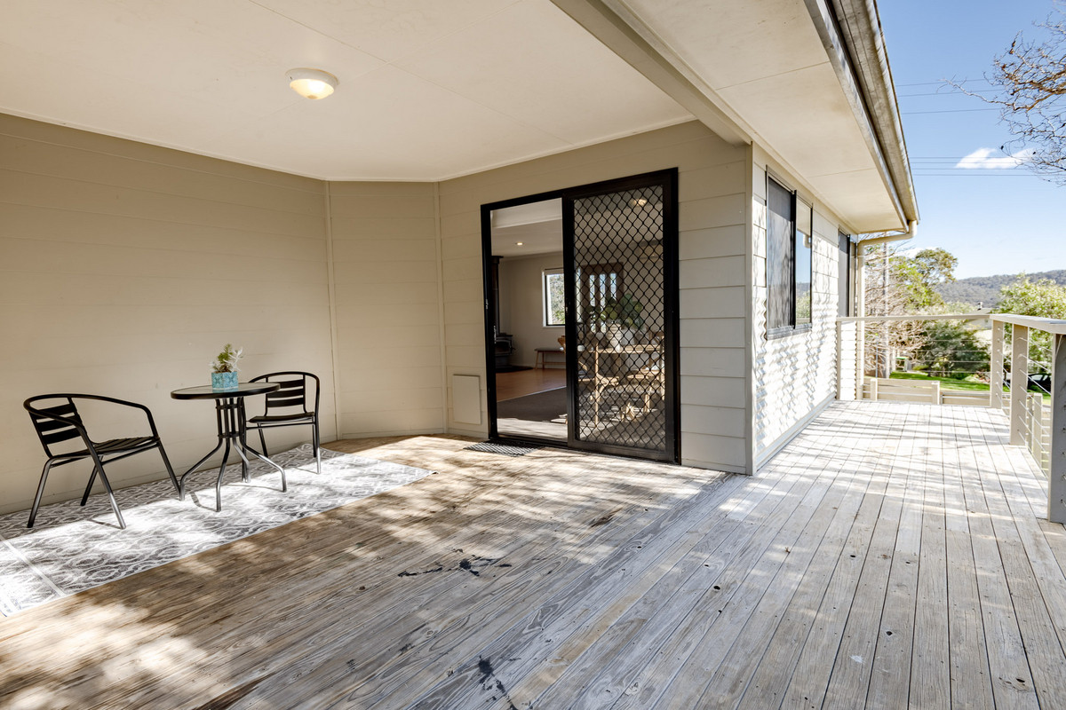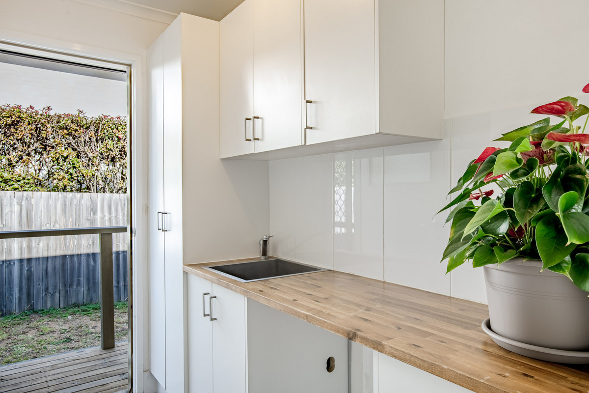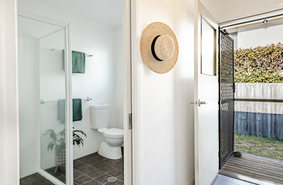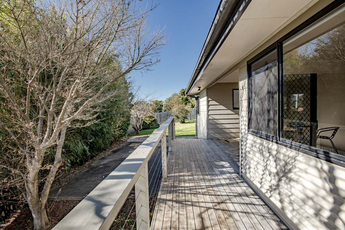 Glass sliding doors off the dining area open onto a large, covered entertaining deck. This highly versatile space, which receives plenty of all-day sun, acts as an extension of the home’s living space and is perfect for an alfresco dining table. A side verandah provides access to the backyard and a large concrete area which is calling for some pot plants, raised herb and vegie garden beds, a fire pit, barbecue and some comfy chairs. It would also be ideal for boat, trailer or caravan parking by widening the vehicle access in the front fence.