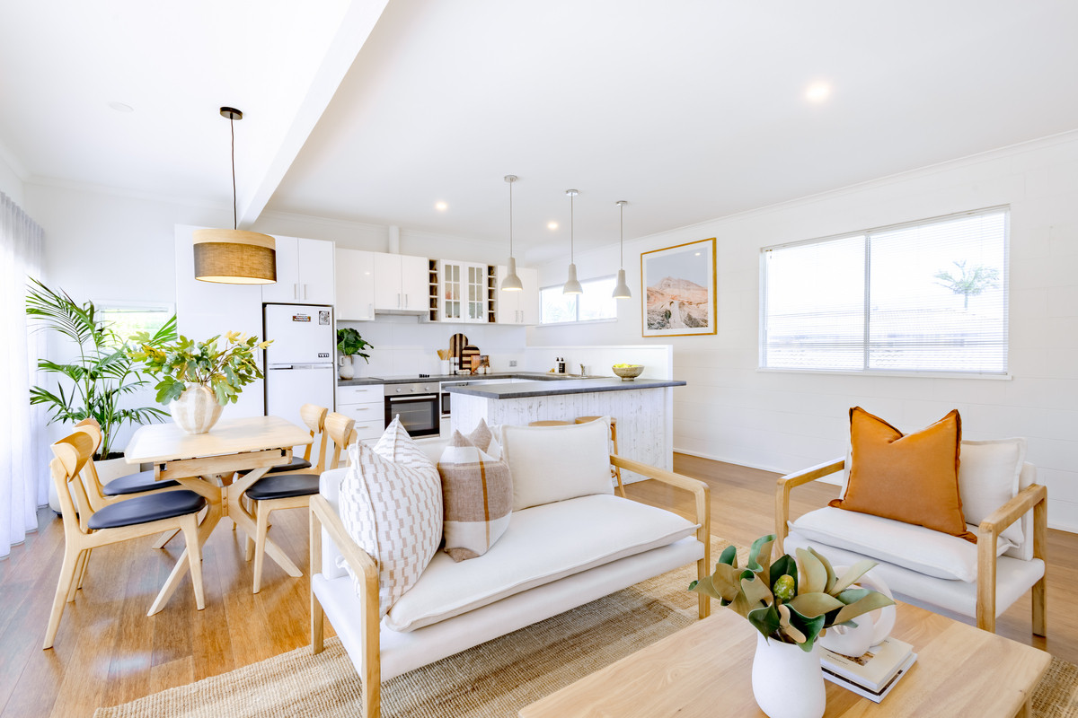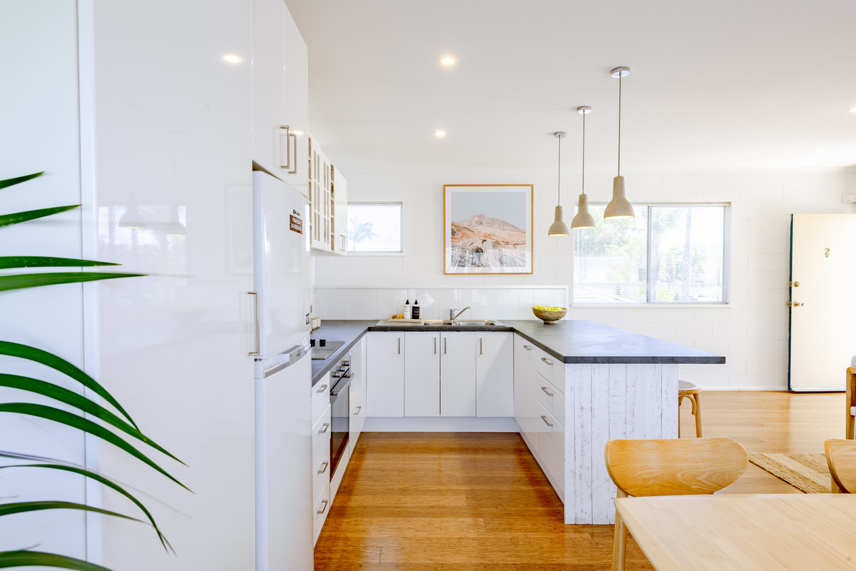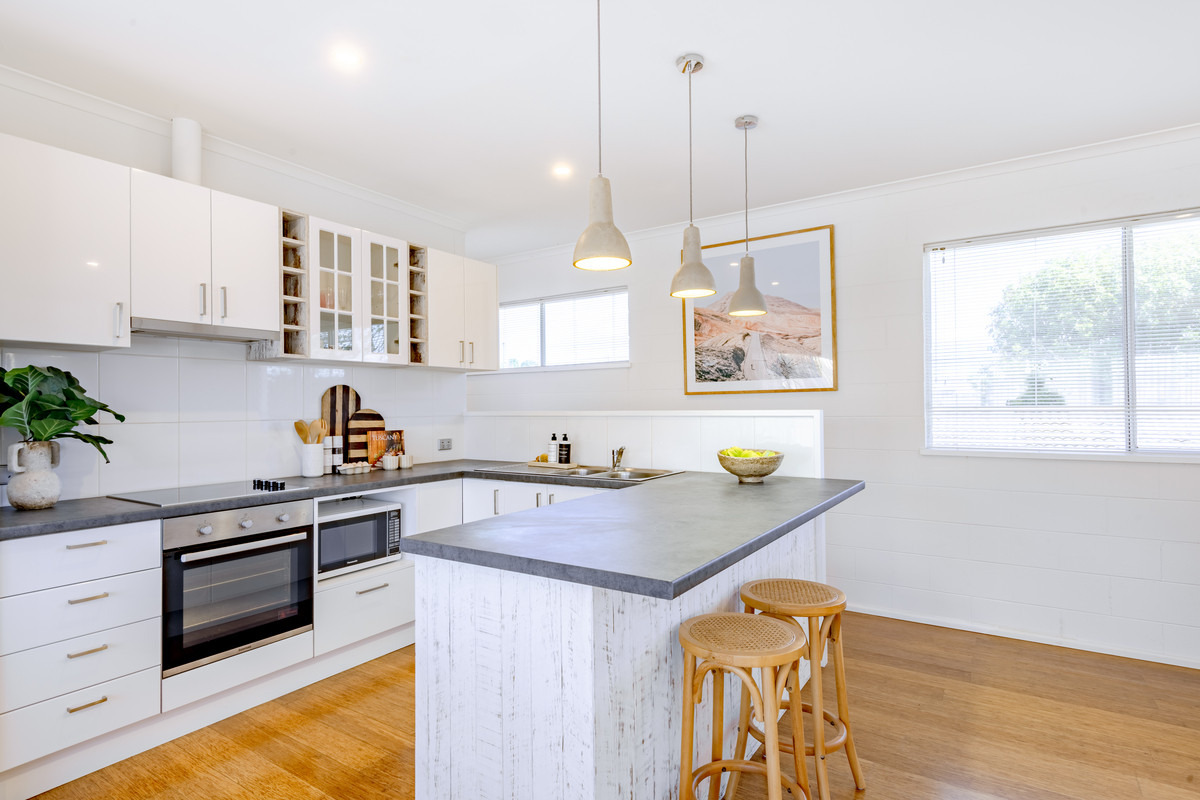 Outside there’s a carport and private driveway with off-street parking for at least three cars. There’s a lockable storage cupboard in the carport as well as a private, fenced clothesline area in the backyard. You could easily add a gate and a small lockable garden shed to this area for extra storage space for surfboards, bikes, SUPs or fishing gear.