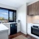 On the upper level, floor-to-ceiling tinted windows and doors flood the impressive main open-plan living area with all-day sunshine, natural light and cross breezes while maintaining a sense of privacy and comfort. This elevated vantage point has stunning views from every angle — towards Short Point and Tura Headland to the north, and over Merimbula Lake and the Sapphire Coast hinterland to the south. The large entertainer’s kitchen has been thoughtfully designed with bespoke cabinetry that offers plentiful storage and Miele appliances. The warmth of the spotted gum flooring beautifully complements the neutral palette and coastal light.